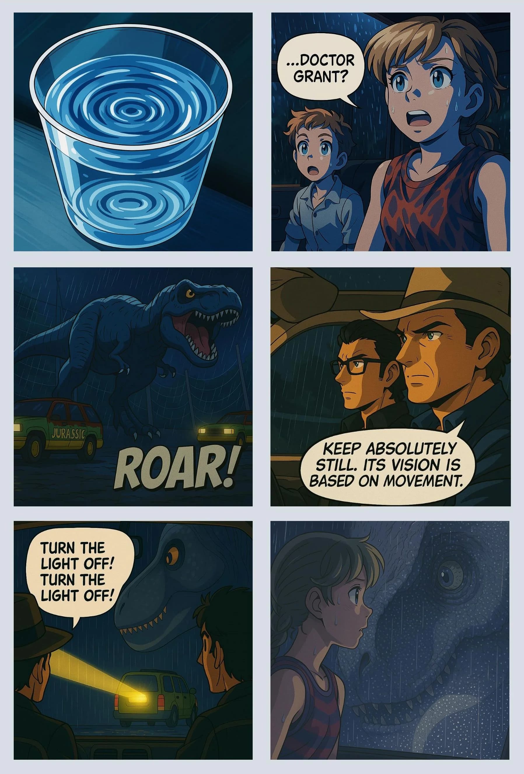 You can now make an entire comic book adaptation of any movie, quite easily. Here's a full-page from "Jurassic Park," with dialogue, effects etc. Didn't take long at all.